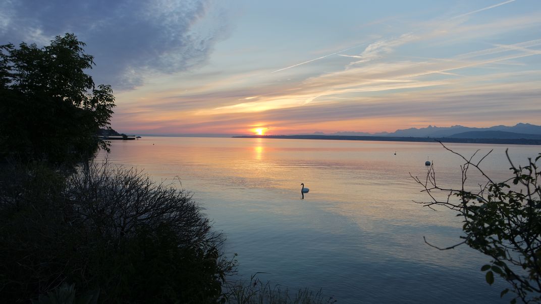 Heute noch keine große gesundheitliche Veränderung. Es gab einen schönen Sonnenaufgang am Genfer See. Die Stadtdurchfahrt war weniger schön. Schön war es wieder am Annecy-See entlang. Eine Abkürzung führte mich ca. 6km im 1.+2. Gang auf der engen Strasse auf den Farclaz-Pass, der mich an das heutige Ziel nach Beaufort brachte. Die Campinganlage ist noch geschlossen, aber wir dürfen sie benützen!