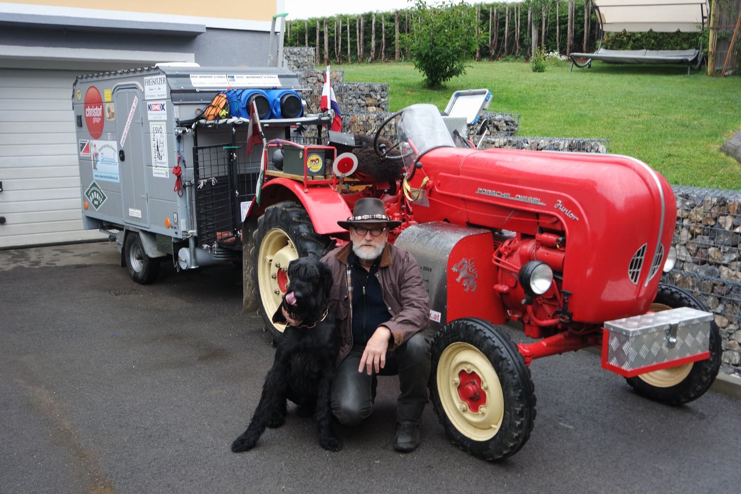 Nach der ganzen Aufregung in den letzten Stunden und der Verabschiedung von meiner Familie, geht’s los! Leute winken aus den Fenstern, unser Bgm. Alfred Brettenthaler und Freunde warteten um “SERVUS” zu sagen! Nun wartet das Gaberl (Überfahrt 2Std/ 1.Gang 7km/h) nach dem Gaberl wurde auch das Wetter besser. Auch im Bereich Murau winkten mir die Leute zu und wünschten viel Glück. Ca. 5km vor Stadl a.d.Mur